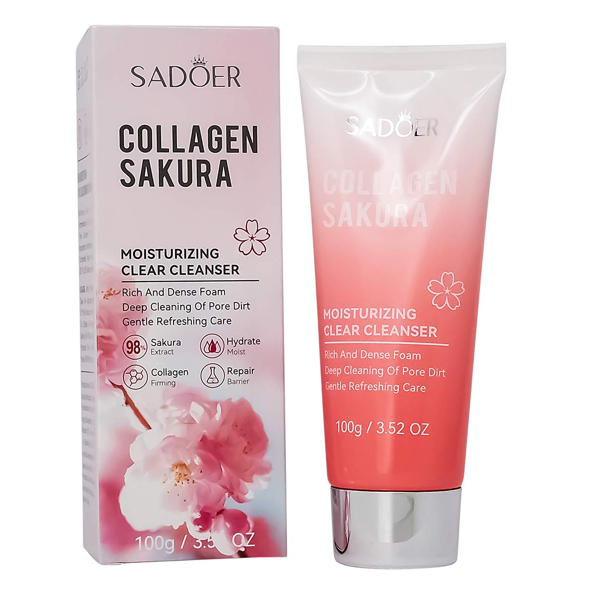 Пенка для умывания с коллагеном и экстрактом сакуры Sadoer Collagen Sacura, 100ml