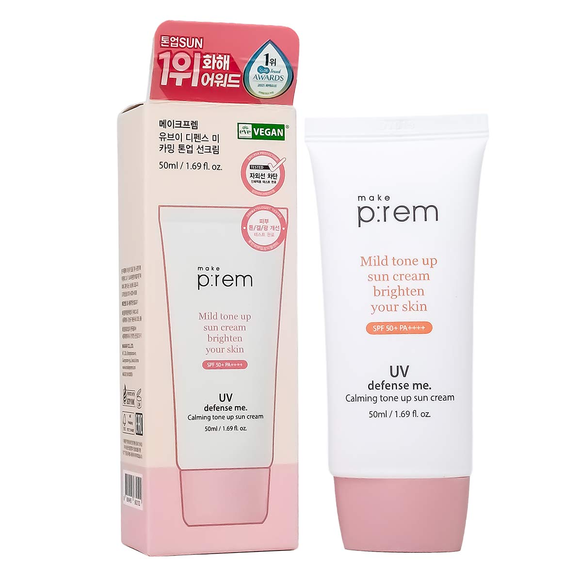 солнцезащитный крем с тонирующим эффектом SPF 50 MAKE P REM UV Defense Me Calming Tone Up Sun Cream, 50ml